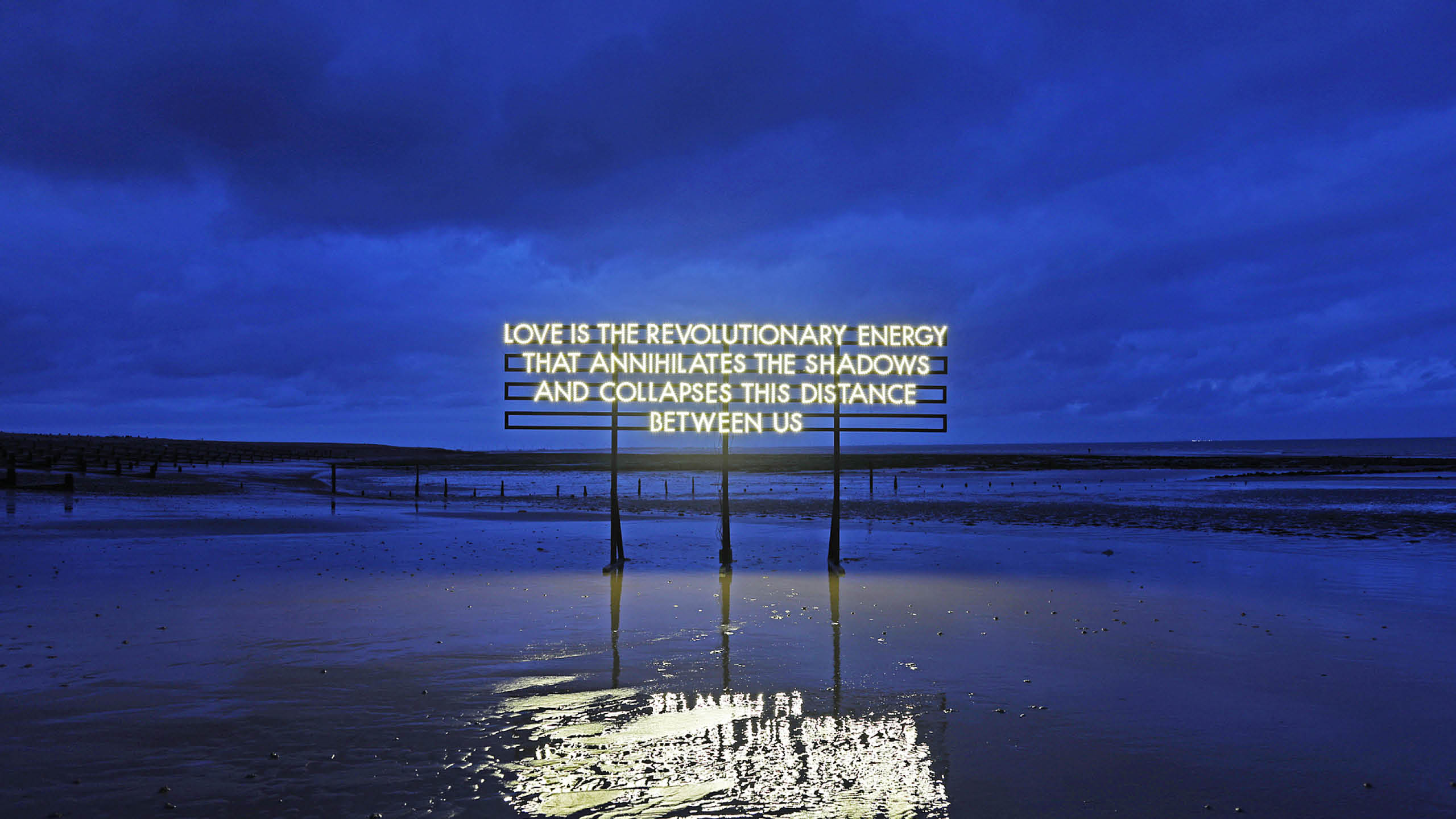 Robert Montgomery is a British contemporary artist well known for his work in public space. He makes light works, billboard poems, fire poems, woodcuts, paintings and watercolours. His work brings text art closer to the language of poetry. He represented the UK in the 2012 Kochi Biennale and the 2016 Yinchuan Biennale. His work is in museum collections across the world including the Albright Knox in New York, and the Museum of Fine Arts Houston. He has had solo museum projects at the Aspen Art Museum in Colorado, Oklahoma Contemporary in Oklahoma City, and the Cer Modern Museum in Ankara. His work was recently included in the Musée du Louvre exhibition “La Suite de l’Histoire” in Paris. His work is hugely popular on the internet, the piece “The People You Love Become Ghosts Inside of You” has been shared online more than 200 million times.